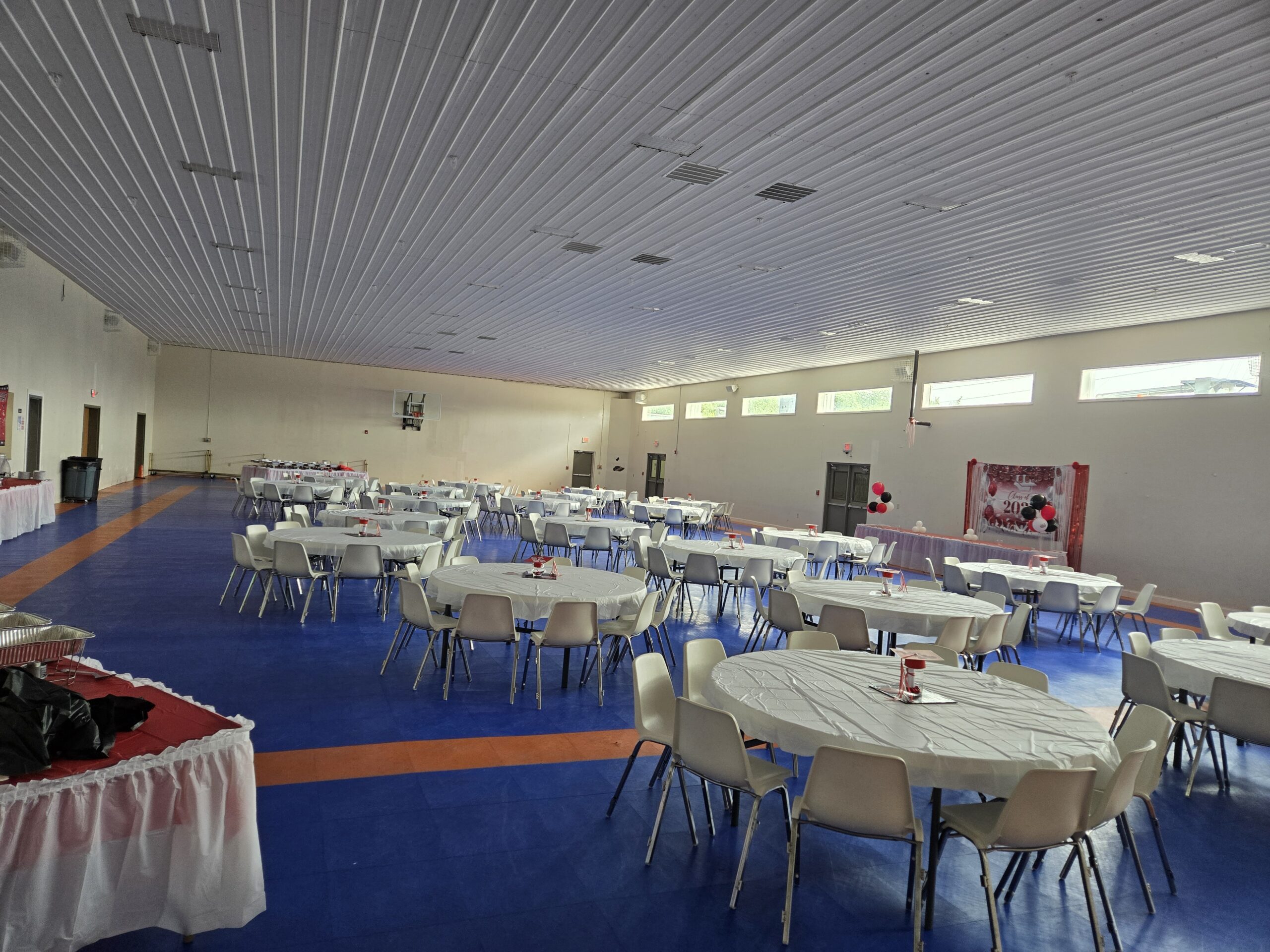 An-Noor Community Center’s gym turns into a banquet hall that could host up to 400 people. Round tables with chairs and other necessary supplies are provided.